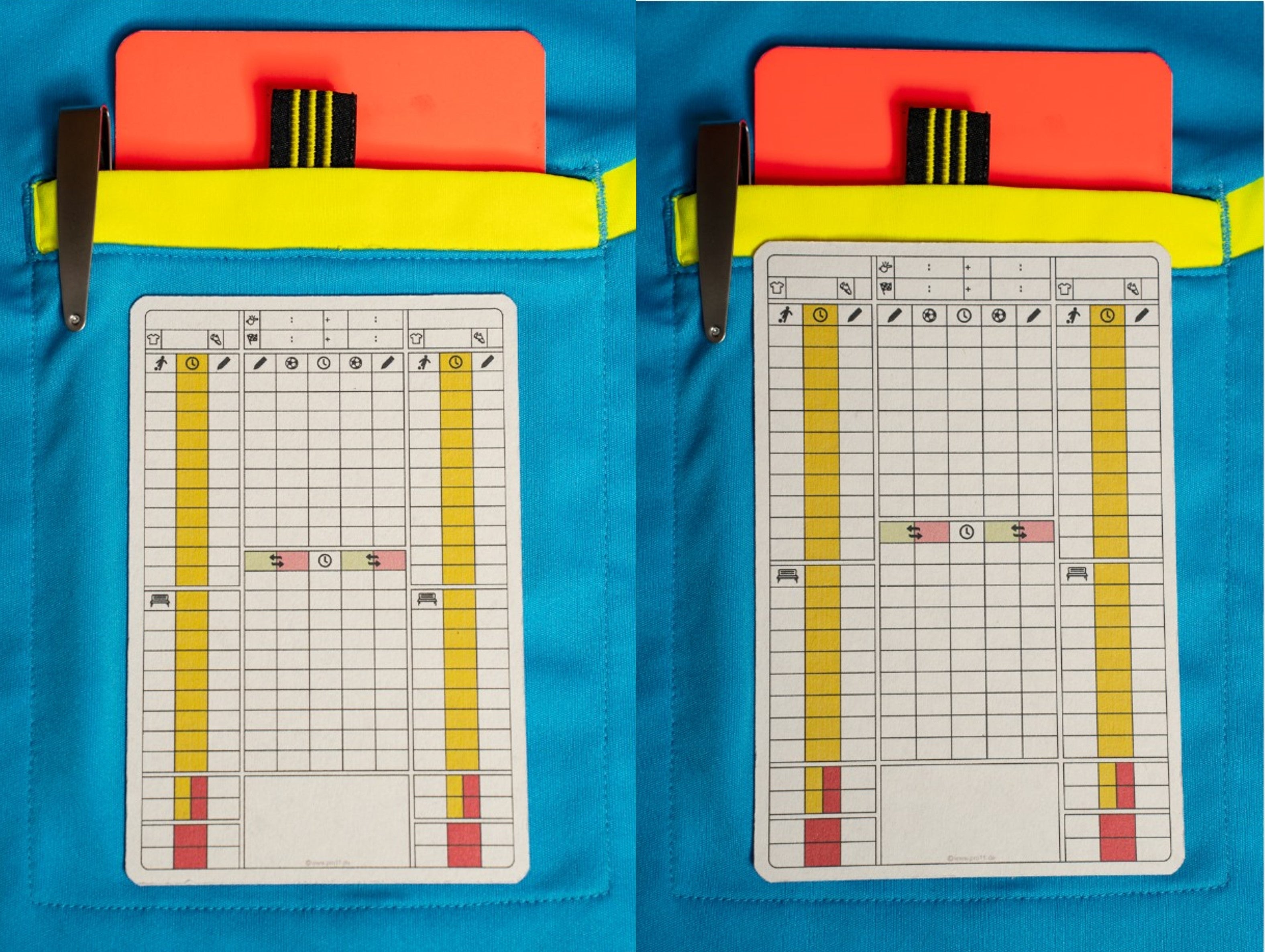 Natürlich wird es mal Spiele geben, in denen vor allem mehr als 9 Tore fallen oder es mehr als 2 Rote Karten gibt, aber für diese wirklich seltenen Fälle zeichnen sich Schiedsrichter durch ihre Kreativität aus. Mal nutzt man das Notizfeld, mal werden andere Felder "zweckentfremdet", mal nutzt man einen separaten Notizzettel. In diese Situation kommt man gelegentlich, aber eben auch ganz egal mit welcher Spielnotizkarte man unterwegs ist.